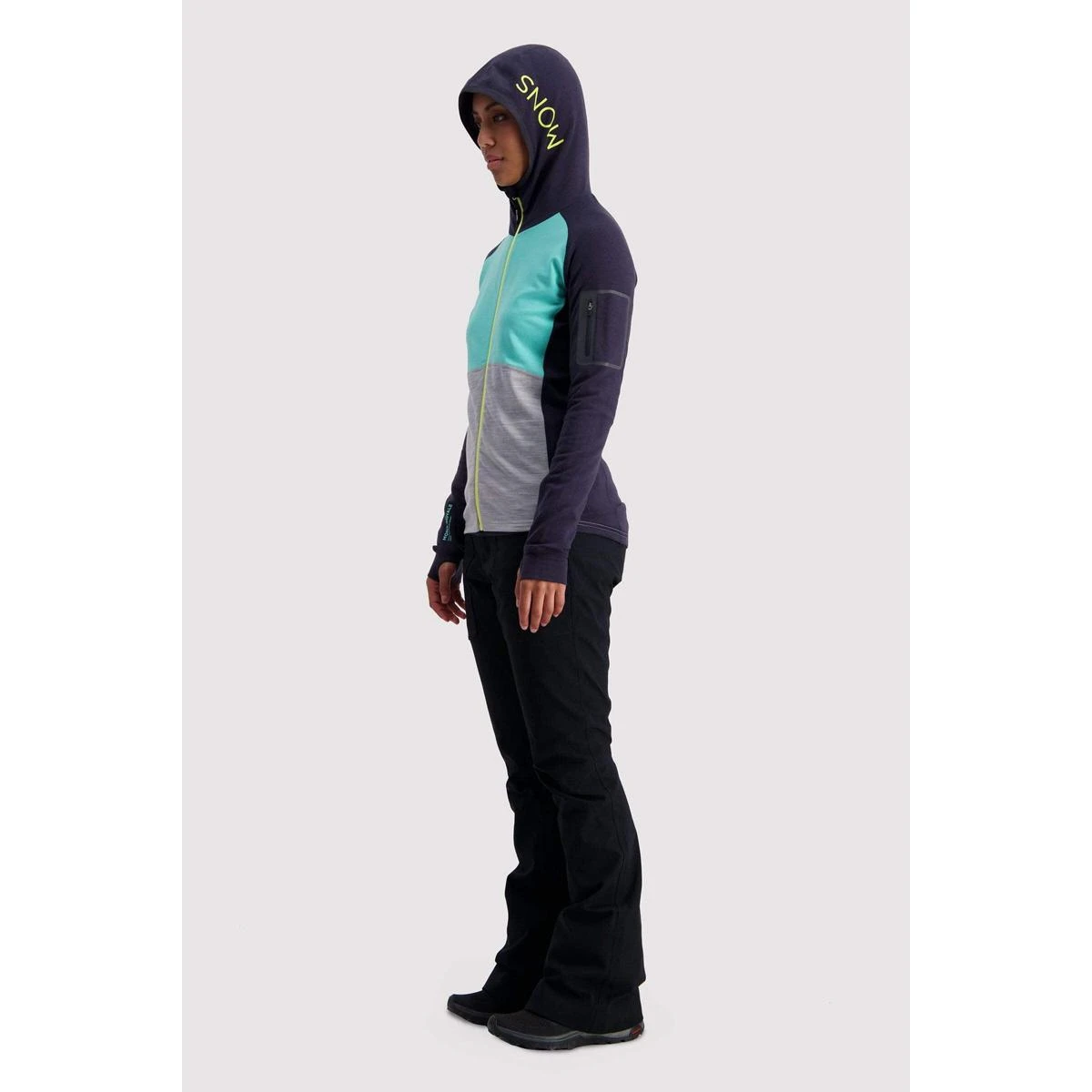 The Mons Royale Womens Ascend Midi Full Zip Hooded Base Layer is the perfect multi-sport baselyayer that is made to be breathable with a good warmth to weight ratio so you wont notice it when packed away.