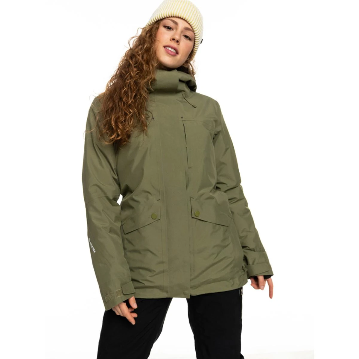 Designed for big mountain proficiency, this snow jacket is guaranteed to keep you dry with a first-class waterproof and breathable GORE-TEX® 2-layer membrane. The long, tailored fit has been insulated with PrimaLoft® Black eco-friendly fill and sealed with fully taped seams, so you stay warm and dry chest-deep in a back bowl. Complete with ROXY HydroSmart technology in the removable neck warmer that protects, calms and cares for skin in harsh conditions, so you get performance with unparalleled style.