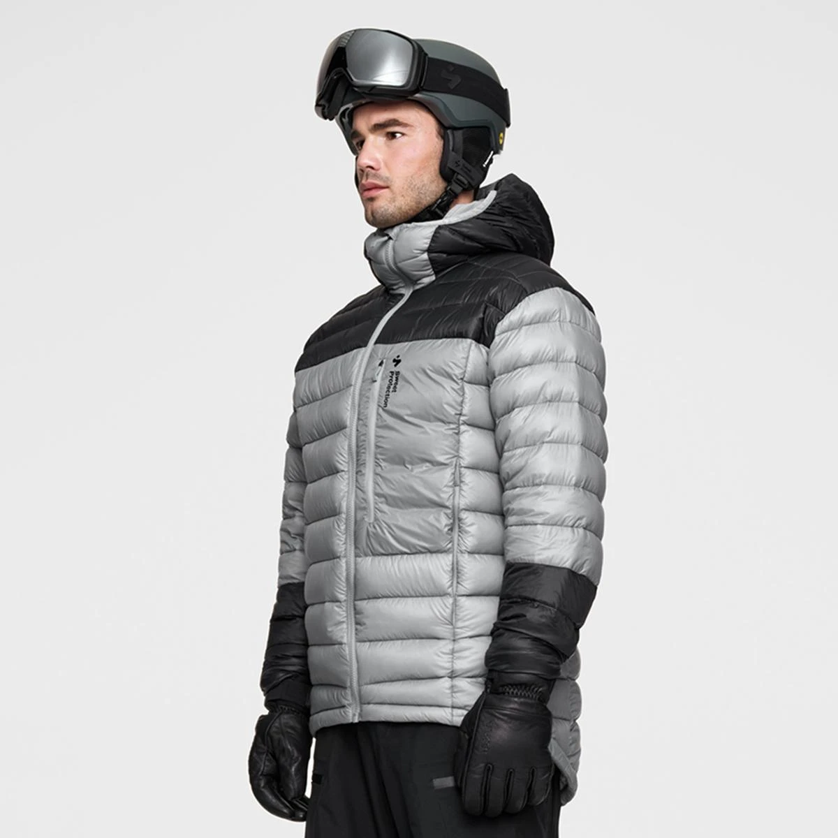 The Crusader Down Hooded Jacket is a light and packable down jacket. This jacket has an articulated fit with a longer cut in back for maxiumum coverage. It’s a great companion on the top or for the ascend of your favorite mountain and offers great warmth-to-weight ratio with its 800 fillpower Downtek Waterproof 90/10 goose down. With two hand warming pockets and one large chest pocket you should be well covered with your stashing needs. A 10 denier Pertex Quantum downproof fabric not only feels amazing but it packs super well. The jacket comes with a pack bag for easy storage. This is a must-have insulation- or standalone jacket, for mountain or everyday use.